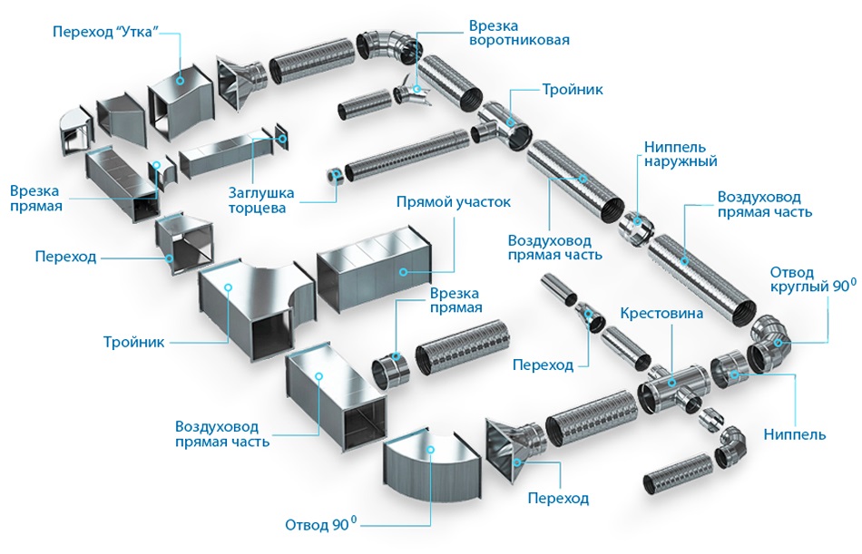 - Воздуховоды круглого сечения (спирально навивные и прямошовные);